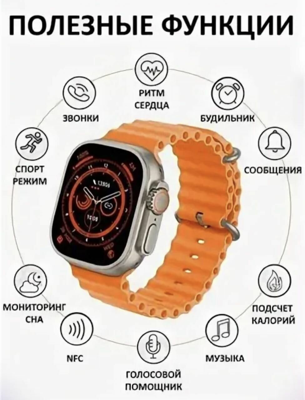 Смарт-часы умные Smart Watch X8 Ultra, 49 mm ,оранжевые/ фитнес часы женские и мужские / смарт часы 8 серии / электронные часы наручные