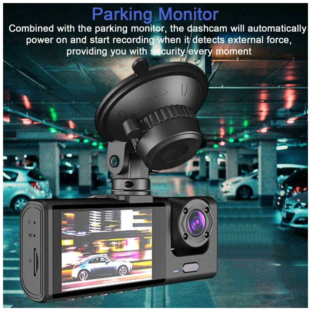 Видеорегистратор BlackHUDi с тремя камерами для автомобиля (капот и салон+ задний ход) 1080P/G-Sensor/3" HDisplay /(3-х канальная запись) интересное: