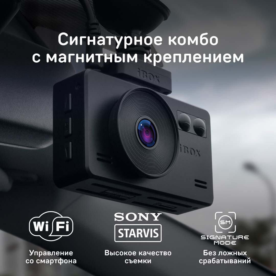 Видеорегистратор с сигнатурным радар-детектором iBOX iCON WiFi Signature интересное: