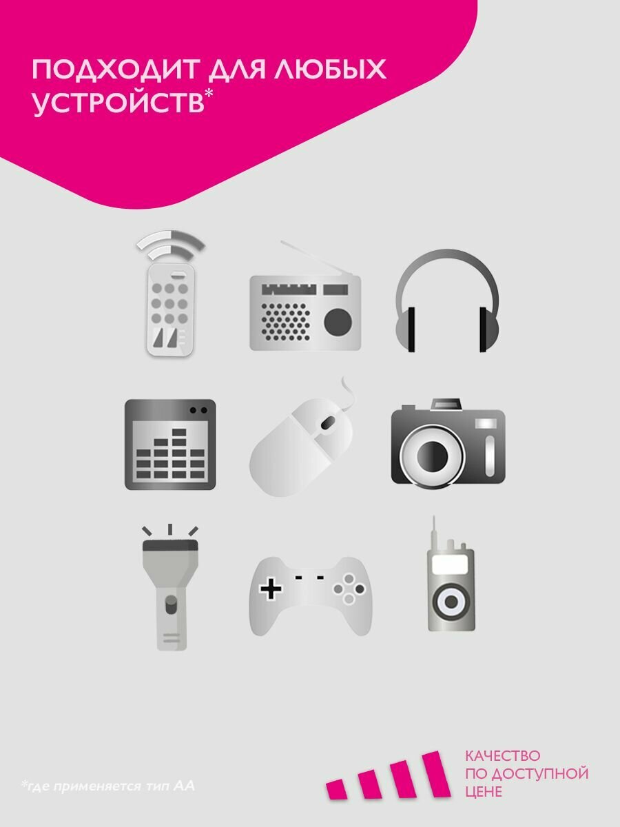 | Отзыв: | Нормальные батарейки. Работают не намного меньше всяких дюрасел и прочих раскрученных брендов, а по цене значительно ниже. Покупаю ФАЗА и ААА и Крона. |