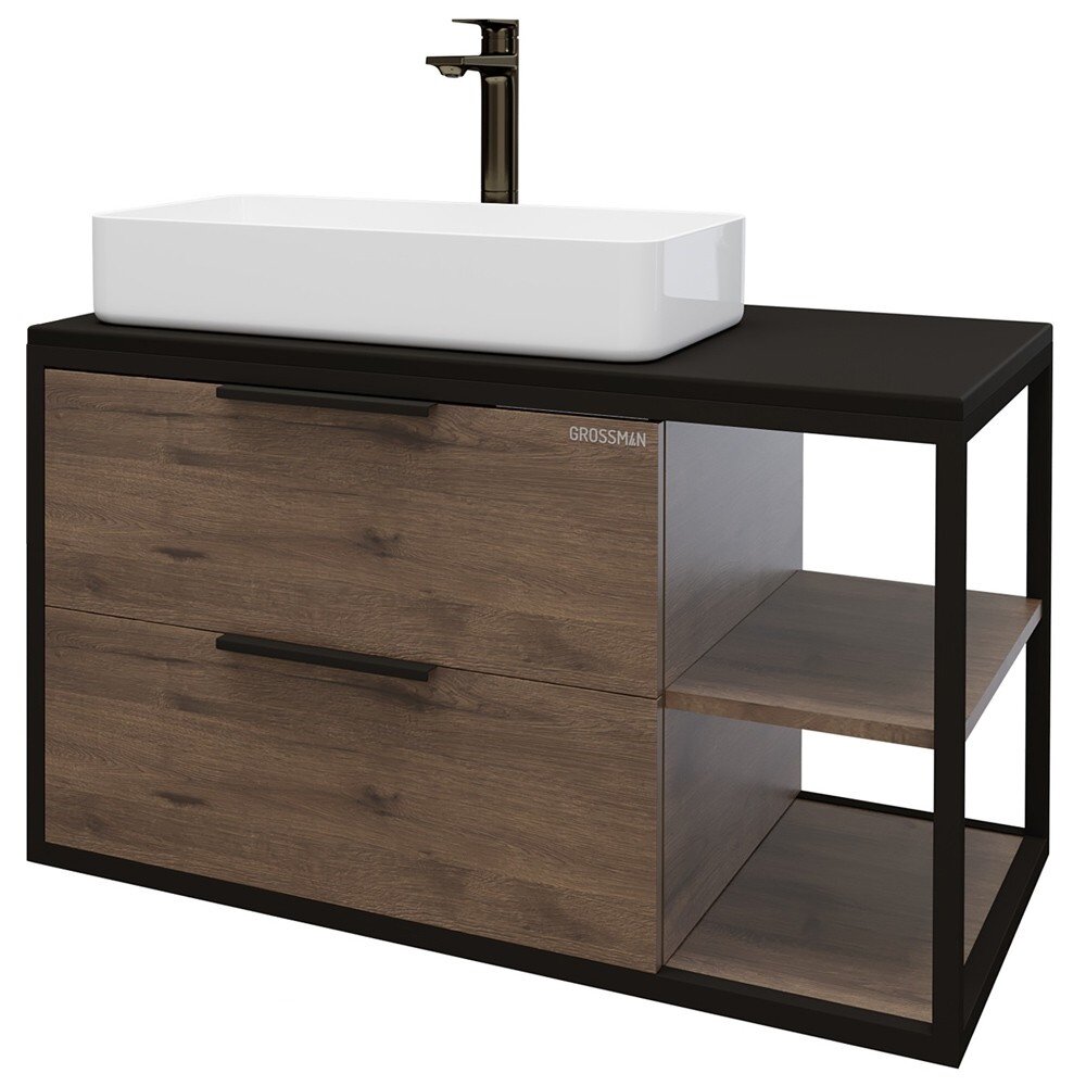 Тумба под раковину Grossman Лофт 90х48 веллингтон/черный (109001)