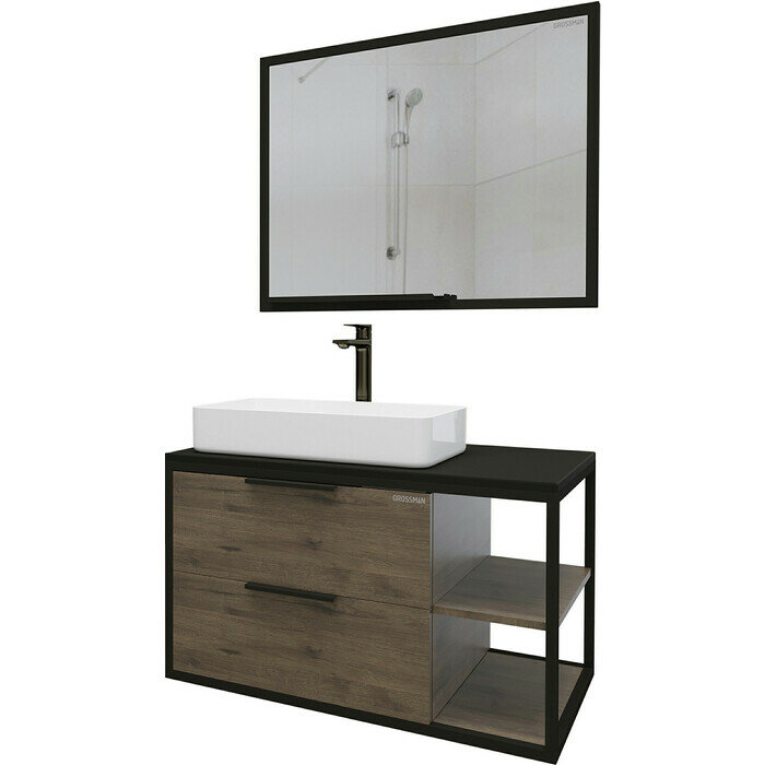 Тумба подвесная с 2 ящиками Grossman ЛОФТ-90 см веллингтон/металл черный (умывальник GR-3015/GR-3016/GR-3031) интересное: