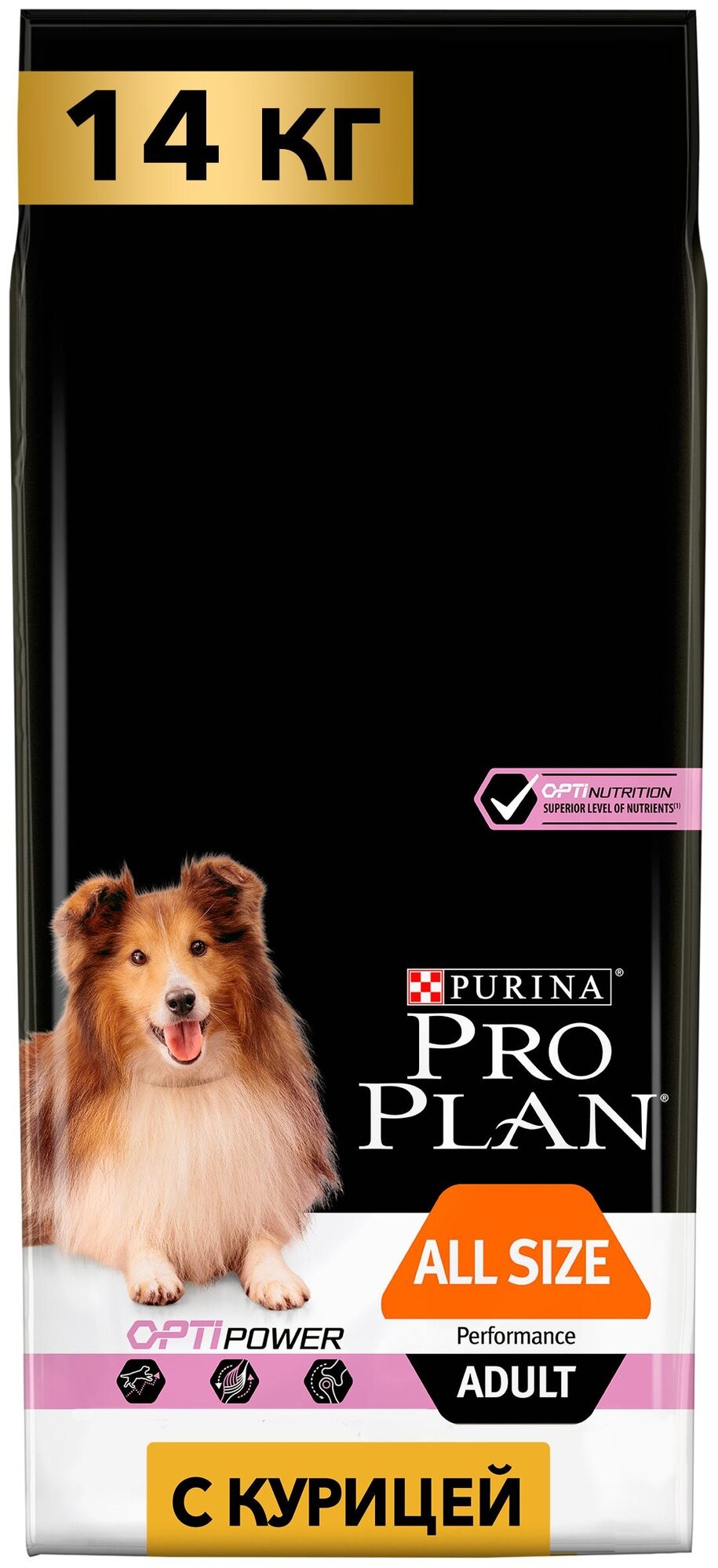 Сухой корм Pro Plan ALL SIZES ADULT PERFORMANCE с комплексом OPTIPOWER® для активных и рабочих взрослых собак всех пород с курицей и рисом, Пакет, 14 кг,Для взрослых собак