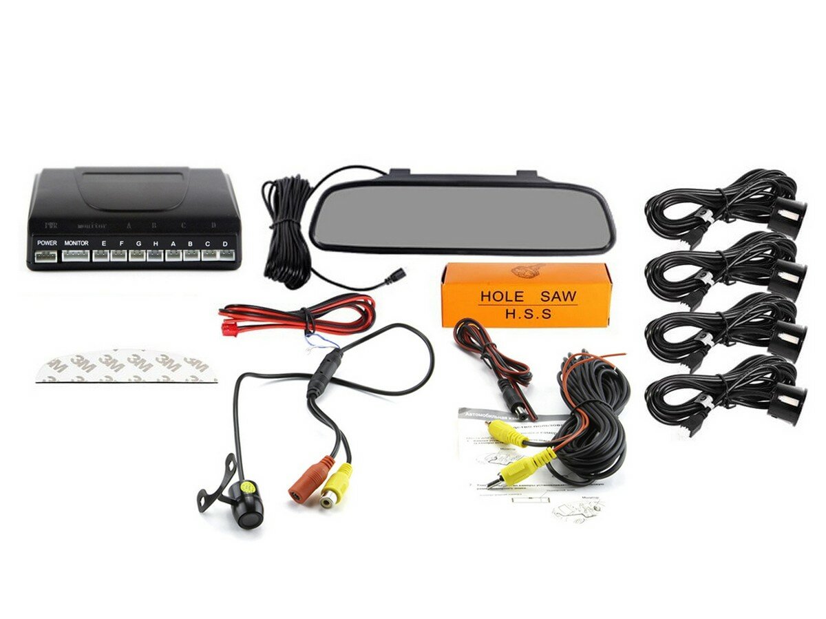 MasterPark 604-4-PZ парктроник с камерой заднего вида для авто, четырьмя датчиками и монитором 4.3 дюйма в зеркале. в подарочной упаковке интересное:
