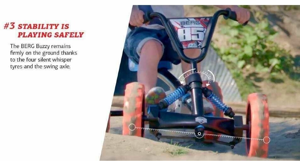 | Плюсы: | Спортивный внешний вид, подвеска как у настоящего авто - независимая, т.е. кочки проезжает плавно. надувные колеса, что также хорошо для плавности. Сын уже второй год на нем ездит - ничего не отвалилось, внешне выглядит как новый (особенно когда помоешь его!). Конструкция оч. надежная - видно, что не Китай (вроде Berg - голландцы). |