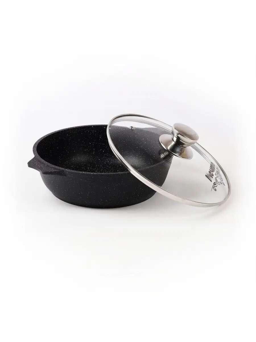 Жаровня 4 л Мечта Гранит 34802, черный гранит, крышка стекло