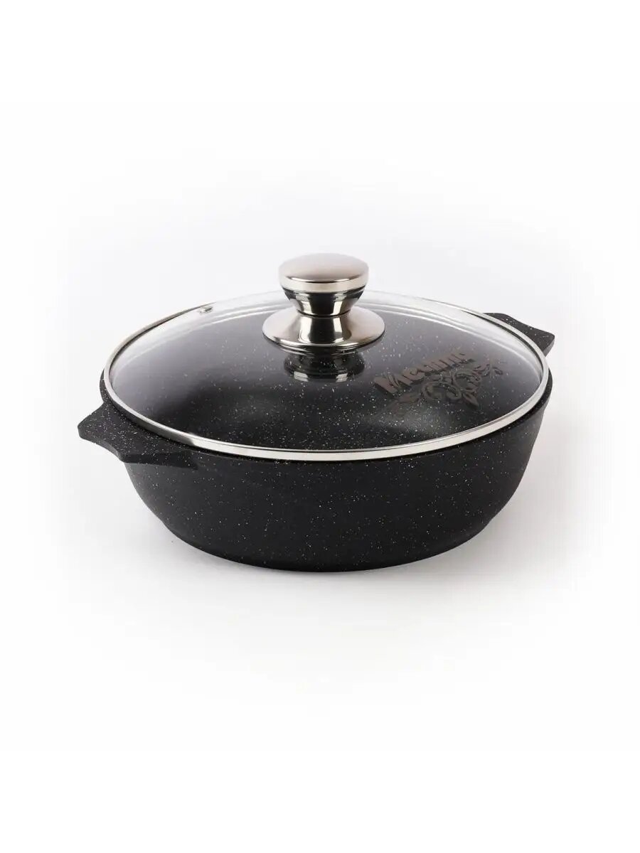 Жаровня 5 л Мечта Гранит 35802, черный гранит, крышка стекло