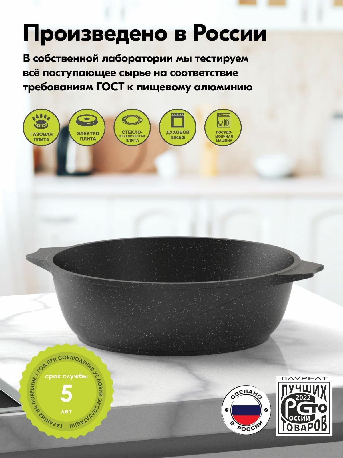 Жаровня "Мечта" 6л Гранит с антипригарным покрытием с крышкой, можно мыть в посудомоечной машине