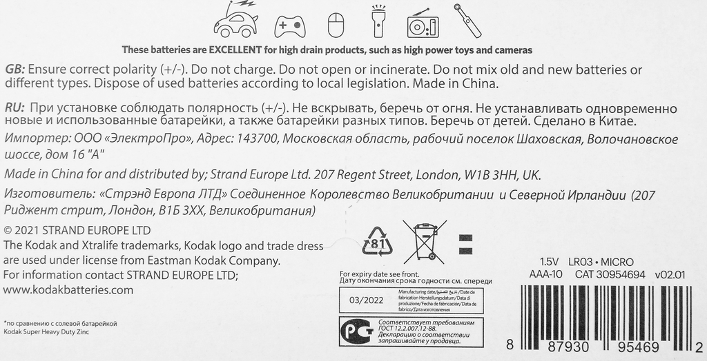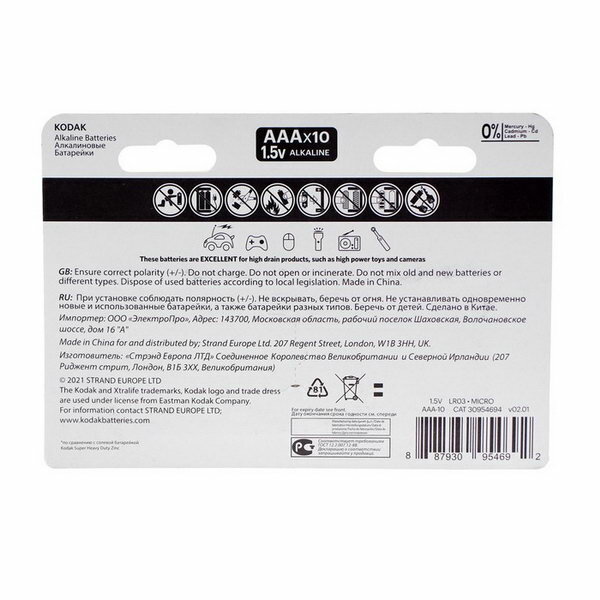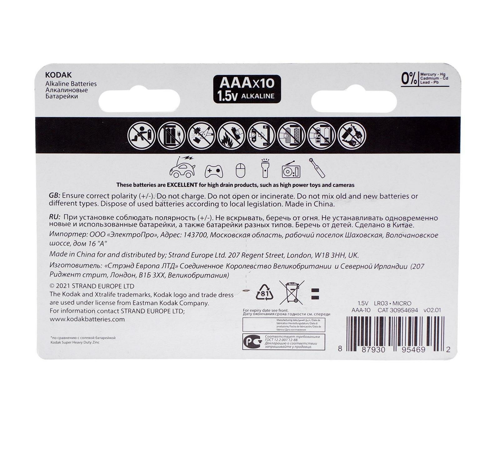 Батарейка Kodak Xtralife (Б0014331) ААА мизинчиковая LR03 1,5 В (10 шт.) интересное: