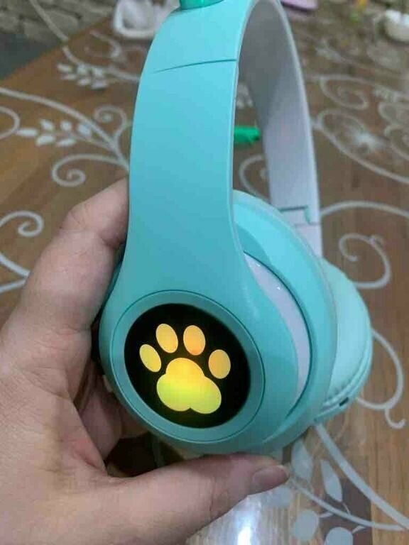 Беспроводные наушники Cat Ear P33M с bluetooth и светящимися кошачьими ушками и лапкой (розовый)