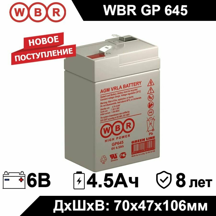 Аккумулятор WBR GP-645 (6В, 4.5Ач / 6V, 4.5Ah)