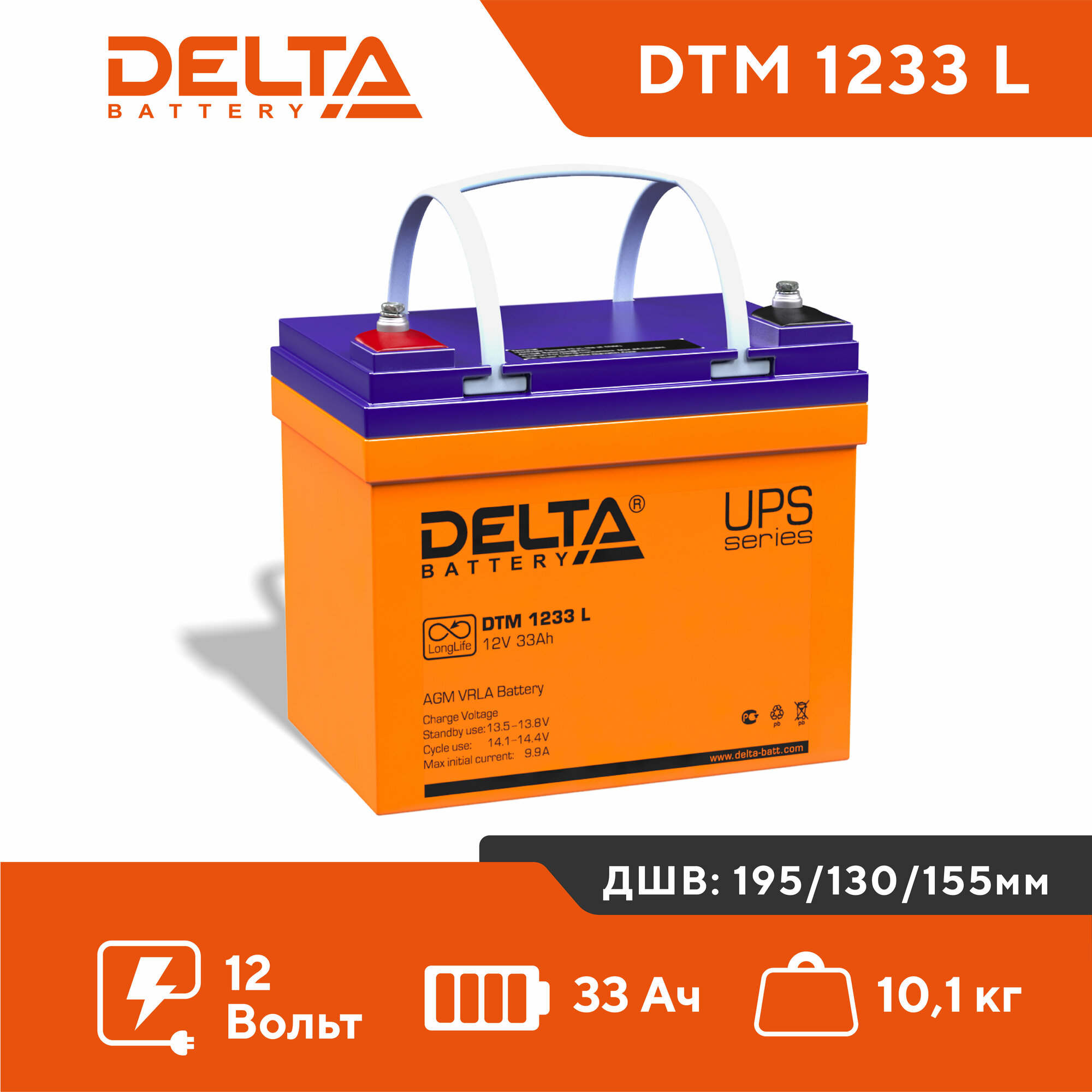 Аккумулятор Ибп 12В 33 А.ч. Delta (Dtm 1233 L) (195Х130х168) Agm DELTA battery арт. DTM1233 L