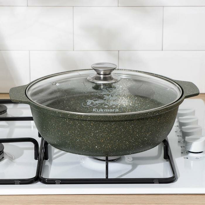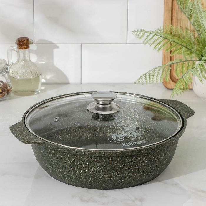 Купить Жаровня Kukmara 3л с антипригарным покрытием, литой алюминий, стеклянная крышка 26см, цвет Mystery, ж31tsm