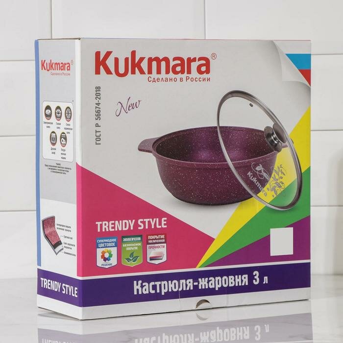 Кастрюля-жаровня 3л Kukmara со стеклянной крышкой, АП линия "Trendy style" (Mystery)