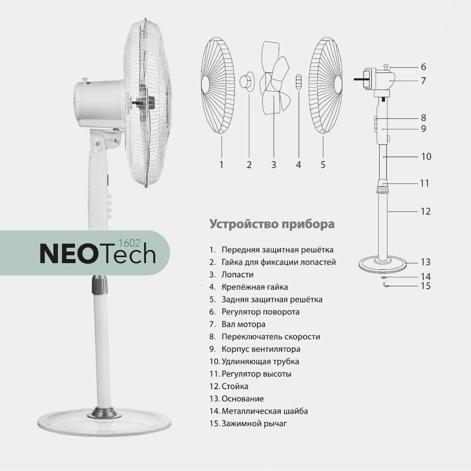 Вентилятор напольный для дома/офиса NeoTech-1602 White (белый, диаметр 50 см) интересное: