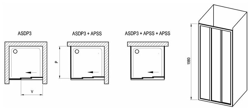 Душевая дверь Ravak Supernova 100х198см, арт. 00VA0UR2ZG, матовое стекло, 3 мм, профиль сатин, asdp3-100 198 сатин+grape интересное: