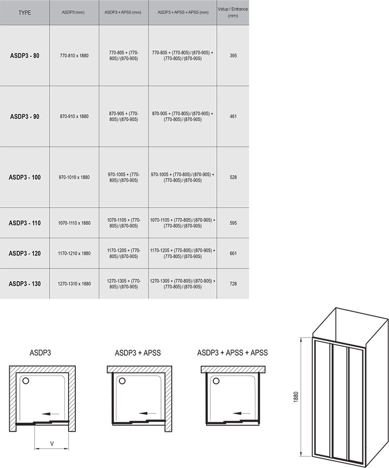 Душевая дверь Ravak ASDP3 80 белая + Гpапе