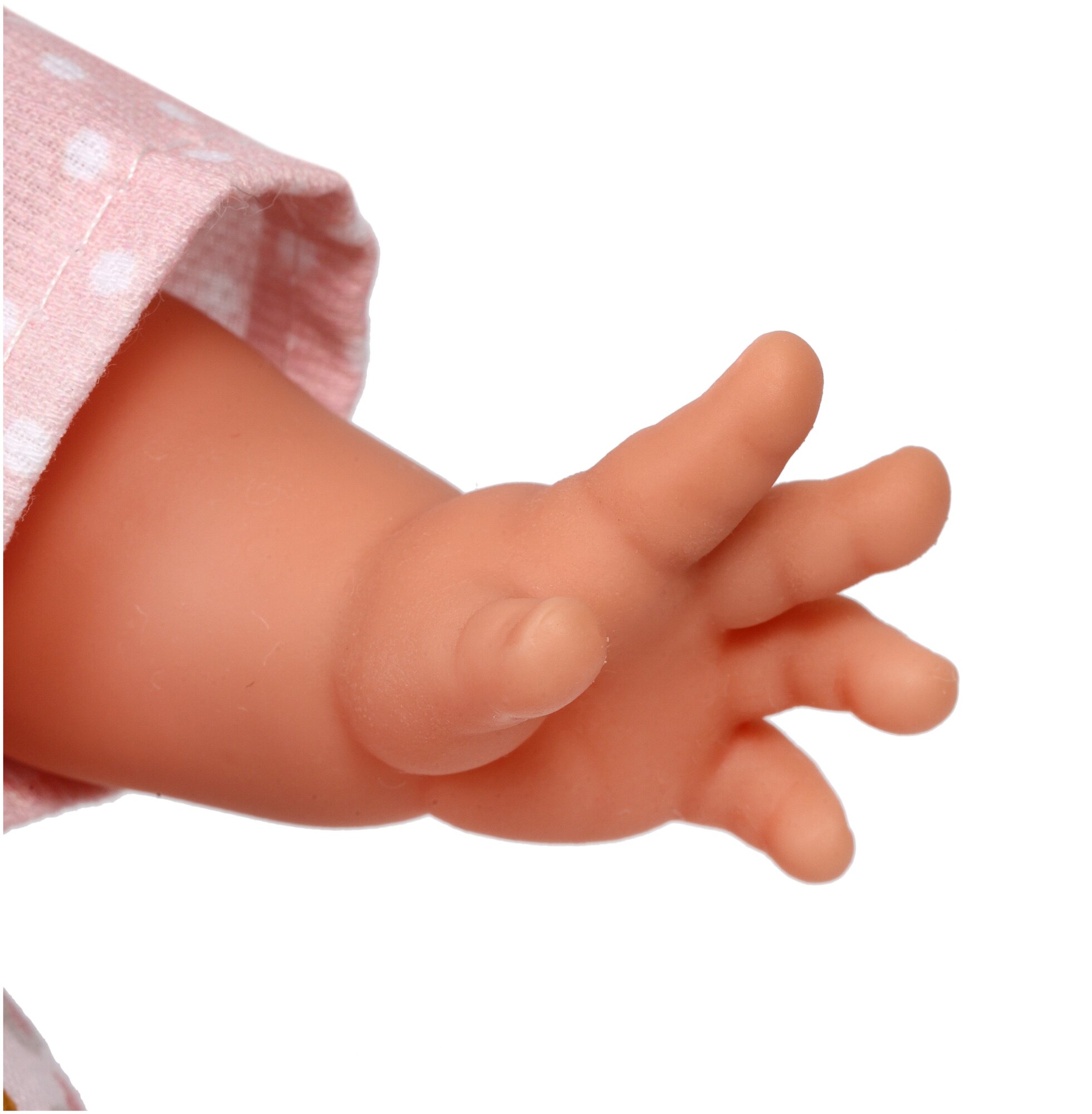 | Комплектация | кукла, бантик для волос, кофта, платье, трусики, носочки, соска |