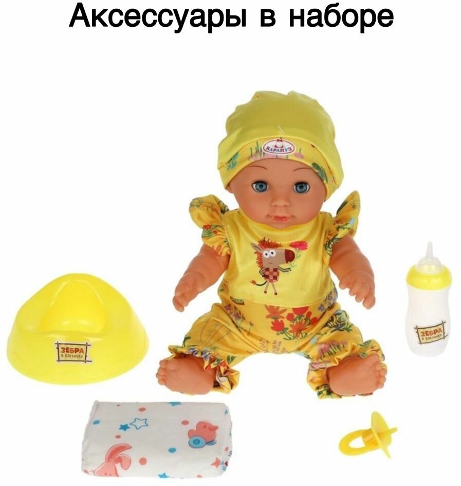 Купить Пупс озвученный Зебра в клеточку пупс 30 см, пьет, писает, поет, 4 аксессуара