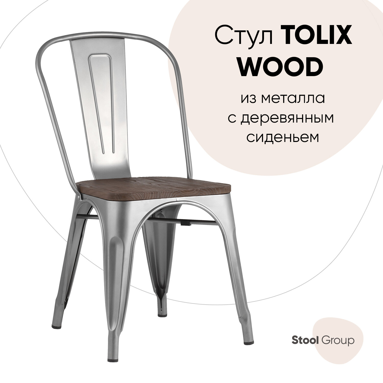 Стул TOLIX серебристый матовый + темное дерево(комплект 6 шт)