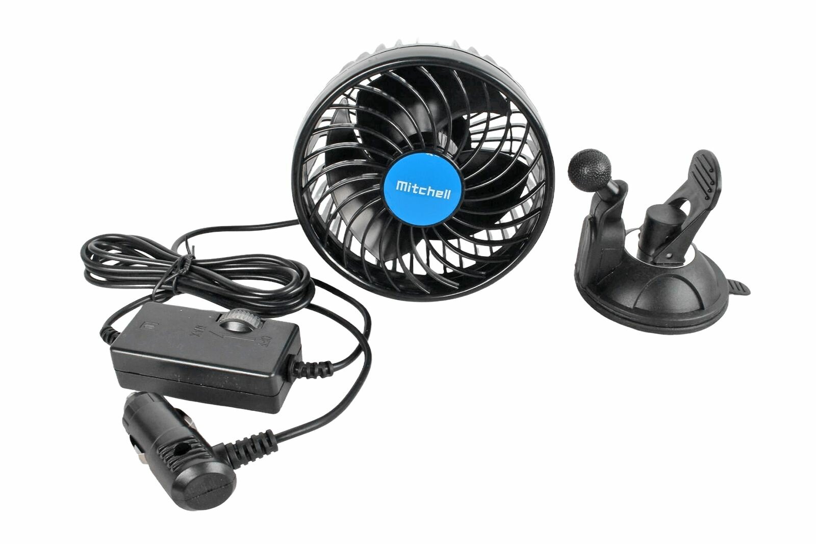 Вентилятор Mitchell 12 см, 12V, 4W, диммер, на вакуумной присоске, с регулируемыми углами обдува, black/blue