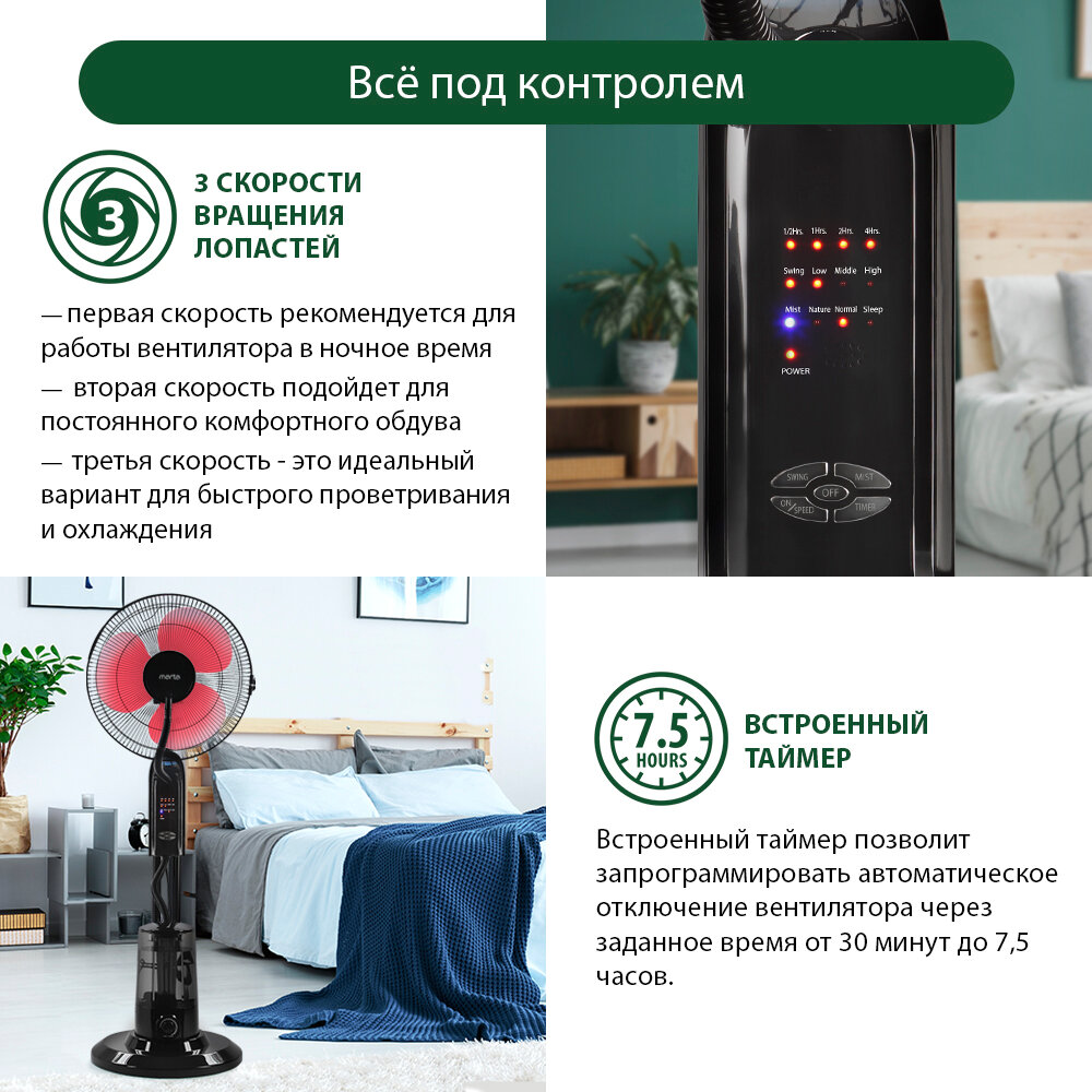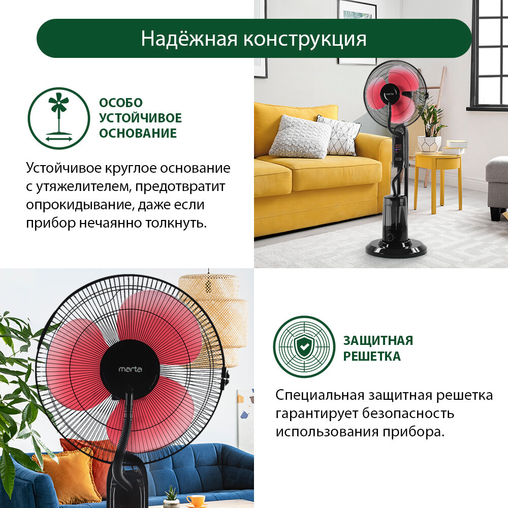Напольный вентилятор с увлажнителем воздуха и пультом ДУ MARTA MT-FN2550 черный/красный интересное: