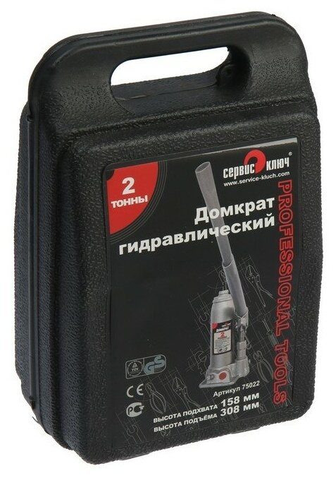 Гидравлический бутылочный домкрат сервис ключ, 75022, высота 158 - 308 мм, в кейсе, 2 т 9088423