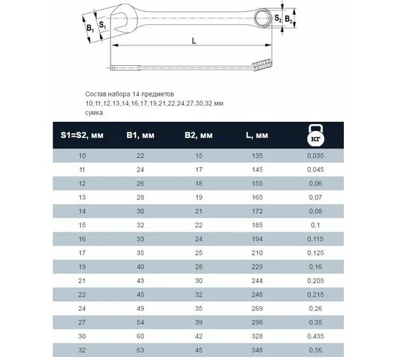 | Гаечные ключи подробно | комбинированные ключи: 10, 11, 12, 13, 14, 16, 17, 19, 21, 22, 24, 27, 30, 32 мм |