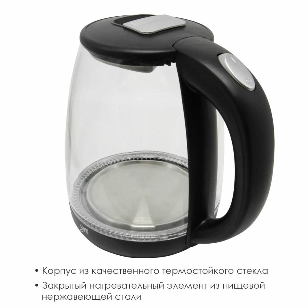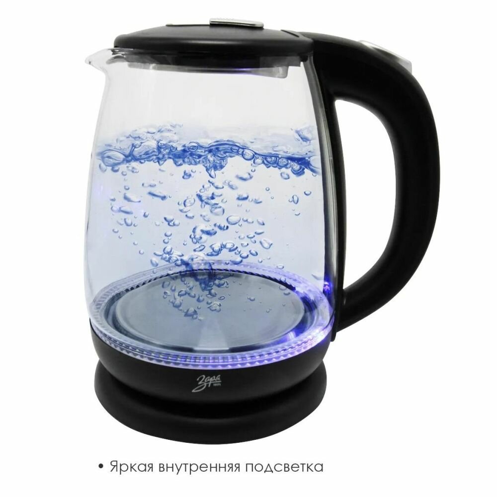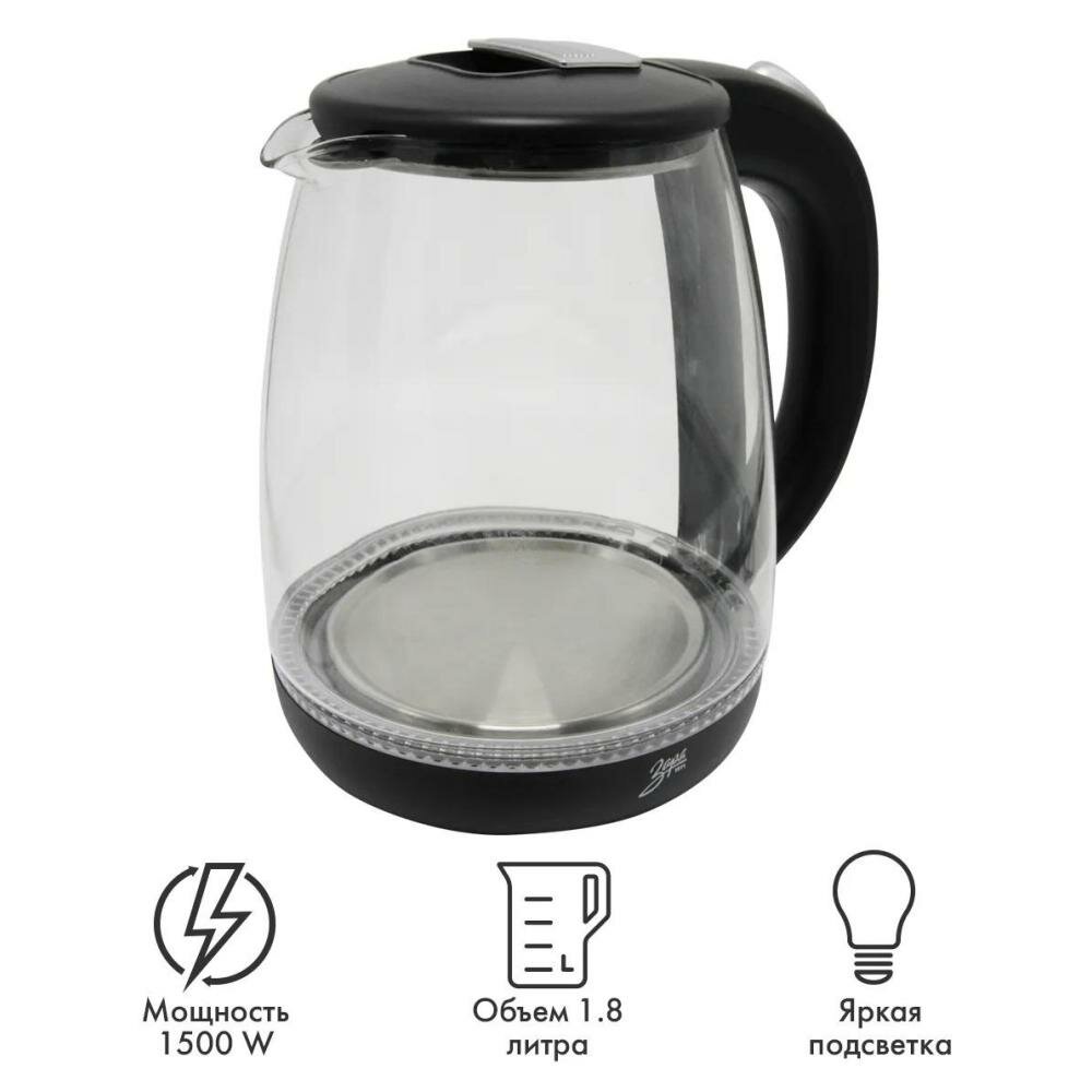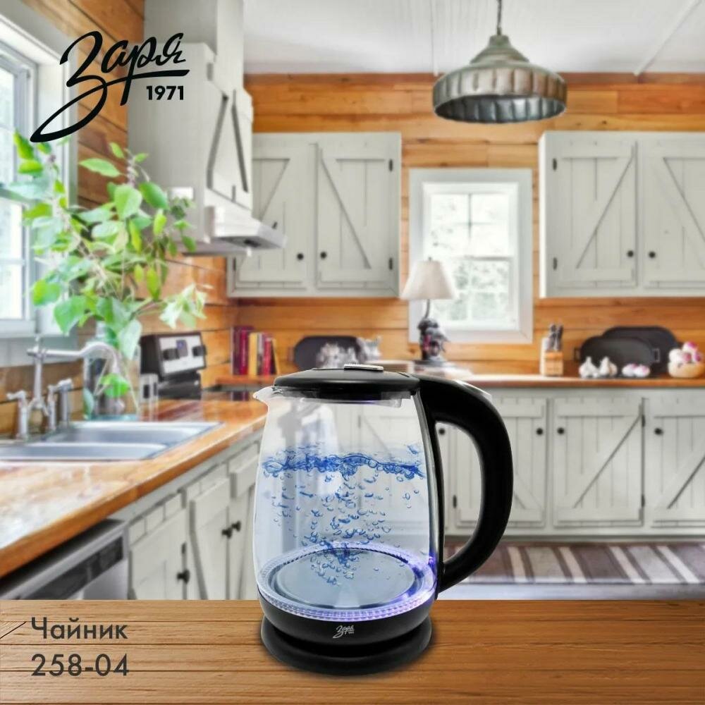 Электрический чайник Заря 258-04 1.8 л / стеклянный / с подсветкой / дисковый ТЭН / автоотключение / поворот на 360 / электрочайник / 1500 Вт / черный