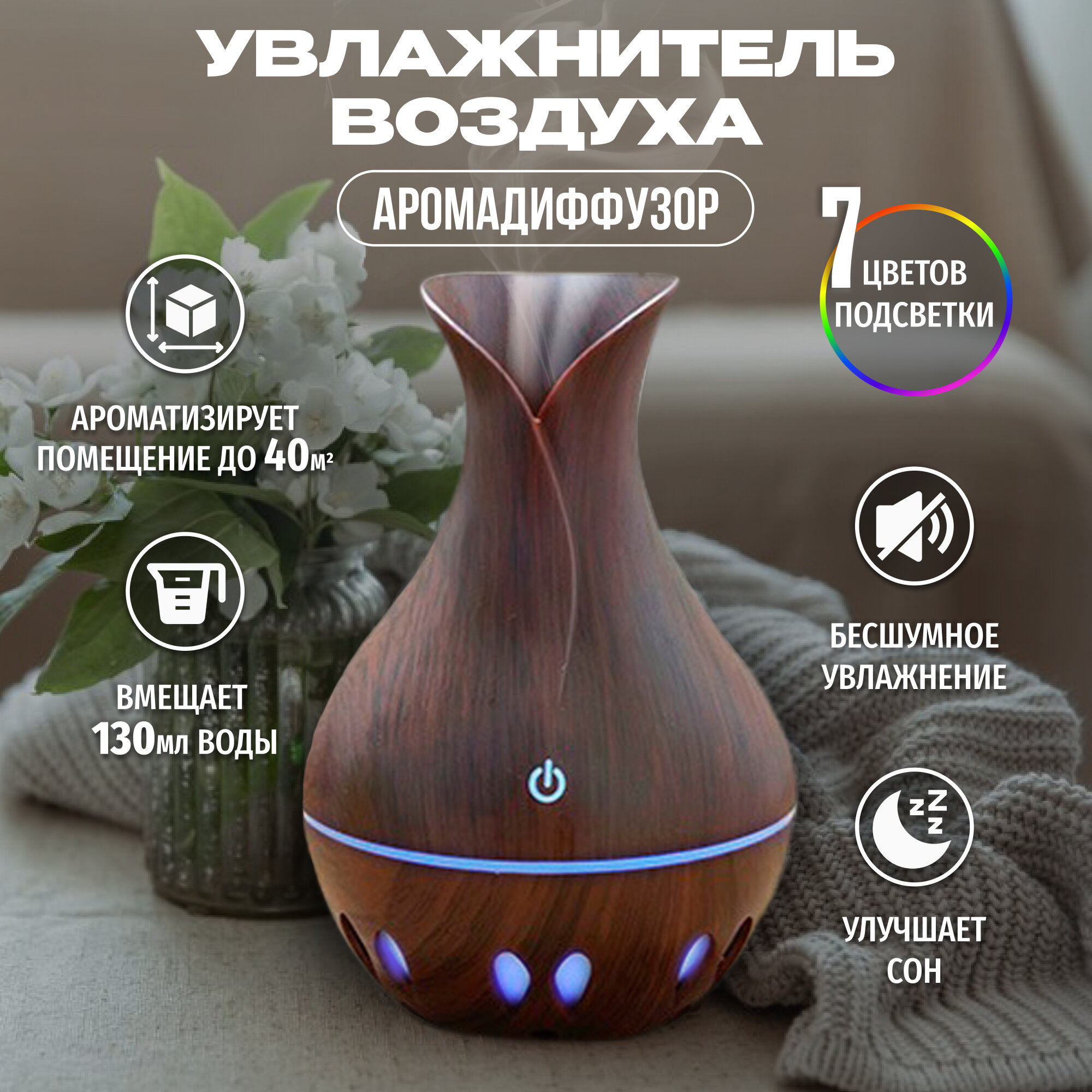 Симпатичный кувшинчик, небольшой по размеру, с подсветкой. Увлажняет воздух в комнате хорошо, использую также аромасла. Работает вообще бесшумно.