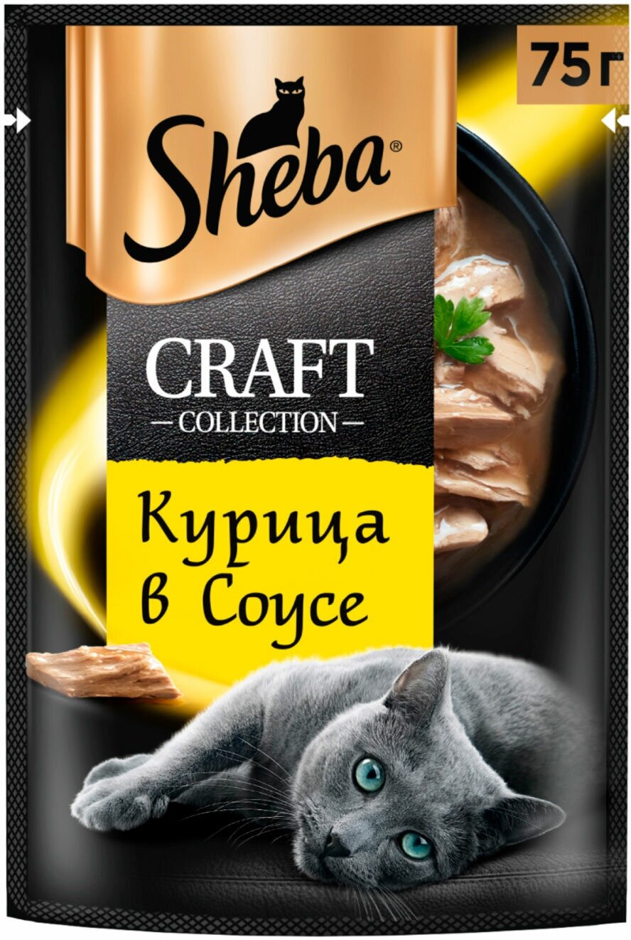 Влажный корм Sheba Craft для кошек, курица, соус, пауч, 75 г