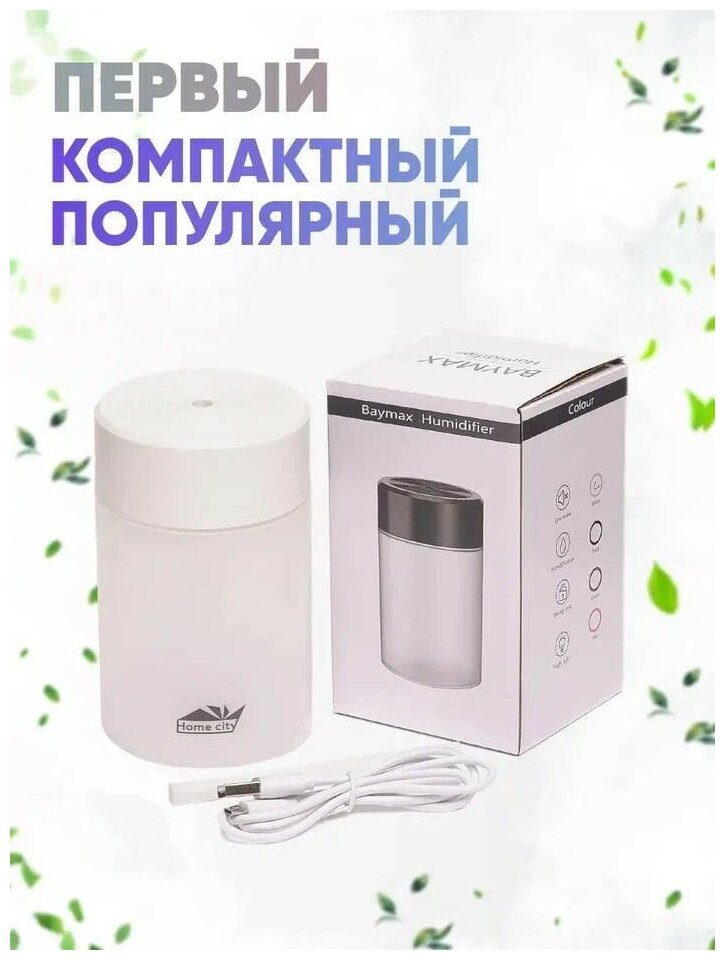 Портативный увлажнитель воздуха ультразвуковой , воздухоувлажнитель, с подсветкой, ночник, для дома, офиса, авто, 360 мл, белый, Home City интересное: