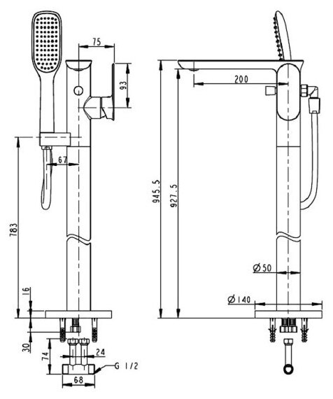 Смеситель отдельно стоящий для ванны с душем Bravat Gina F665104C-B3-ENG