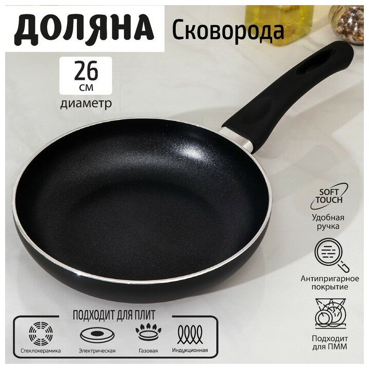 Доляна Сковорода Доляна Basic, d26 см, индукция, антипригарное покрытие, цвет чёрный