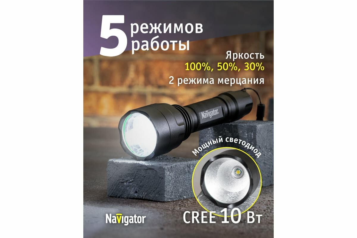 Профессиональный фонарь Navigator NPT-P03-18650