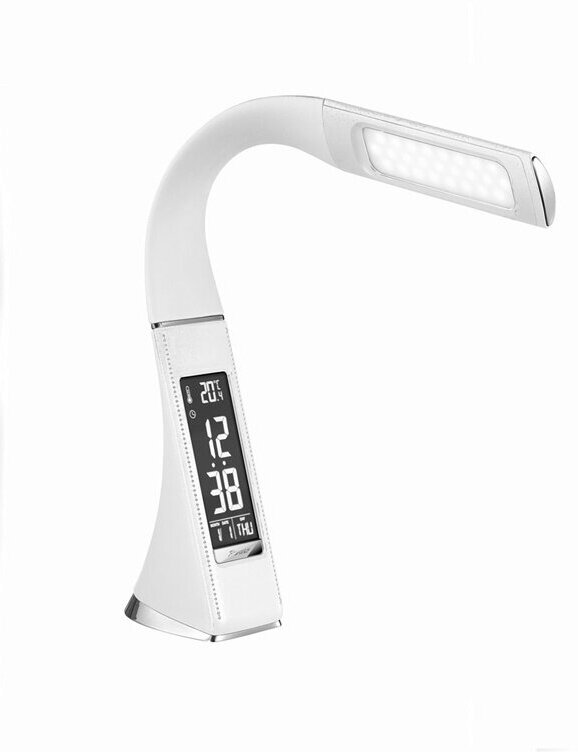 | Дополнительная информация | с функцией календаря; 3 уровня яркости; корпус с кожаной фактурой; гибкая стойка 360°; основание 90 x 65 мм, плафон 145 x 46 мм |