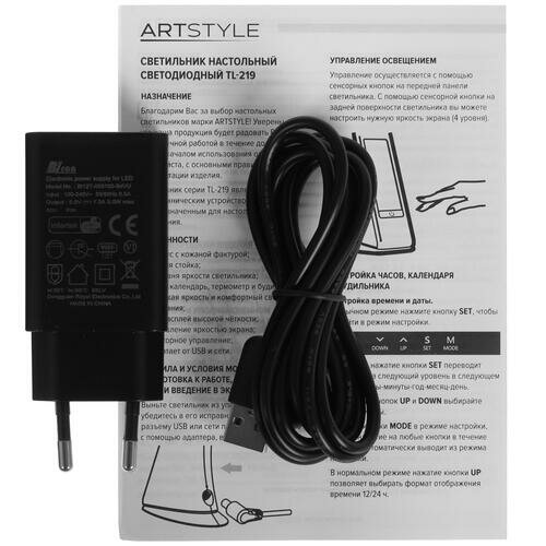 Светильник, ARTSTYLE, TL-219B, черный (настольный светодиодный, диммируемый, с часами и термометром),