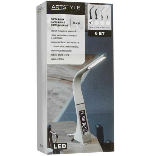 Светильник настольный Artstyle на подставке, 6 Вт, LED, сенсорное управление, часы (TL-219B)