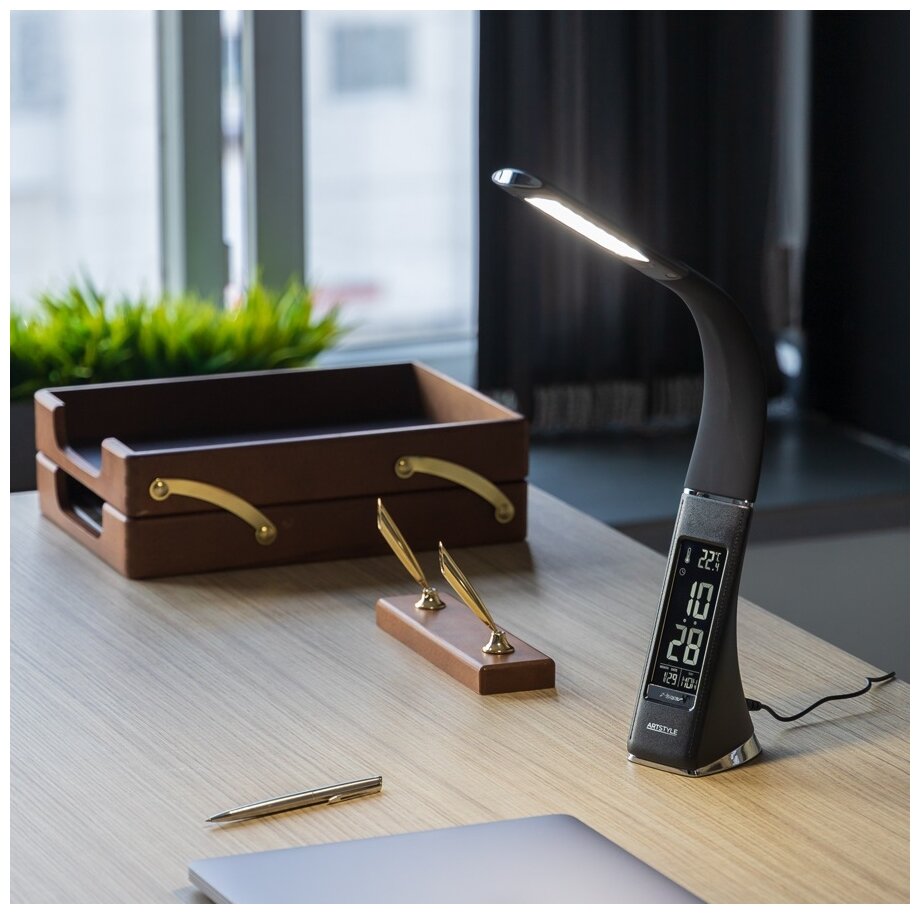 Светильник настольный на подставке Artstyle TL-219B, 6Вт, LED, сенс. упр. часы, календарь, черный, 271415