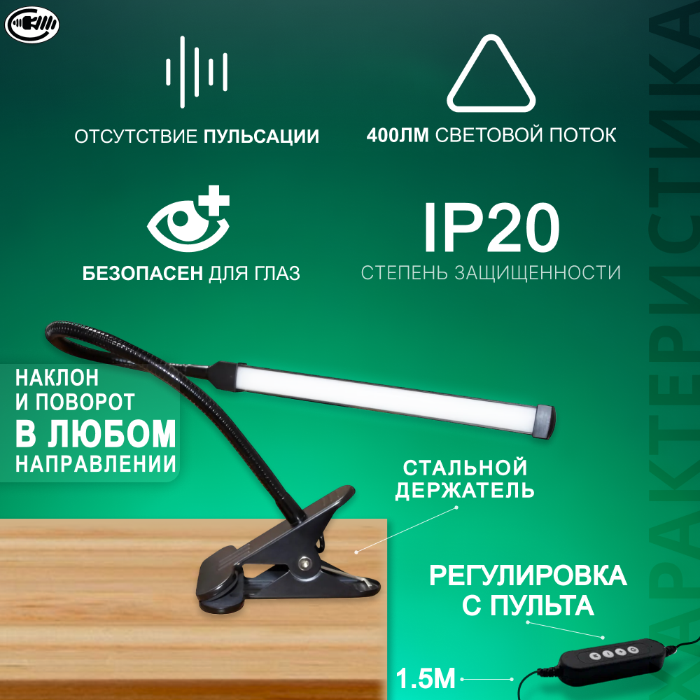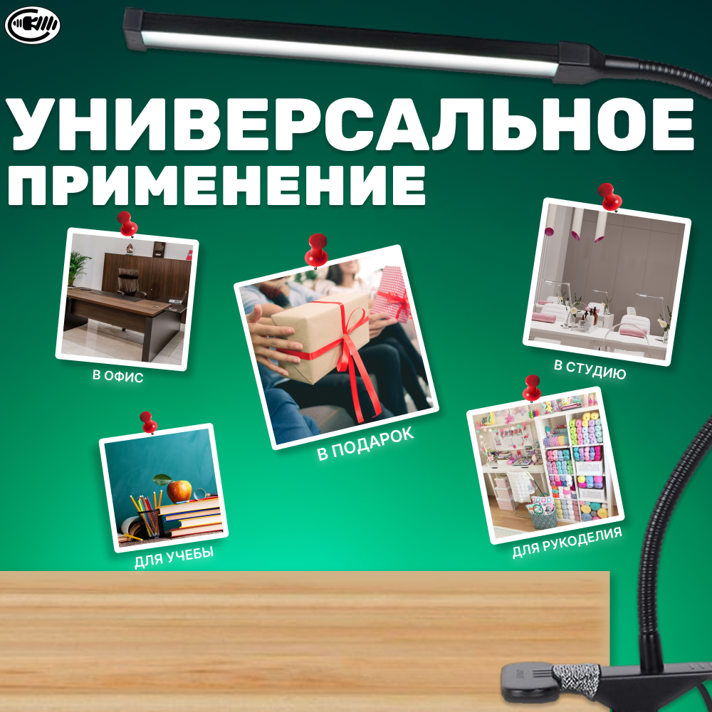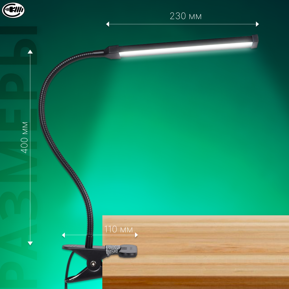 Светильник настольный светодиодный 12вт, светильник на прищепке для рабочего стола, настольная светодиодная лампа в офис.