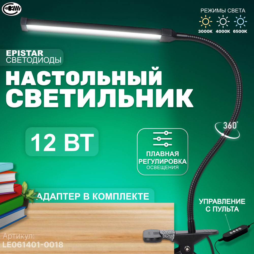 Светильник настольный светодиодный на прищепке с гибкой ножкой LE LED TL-694 12W 4К черный LEEK