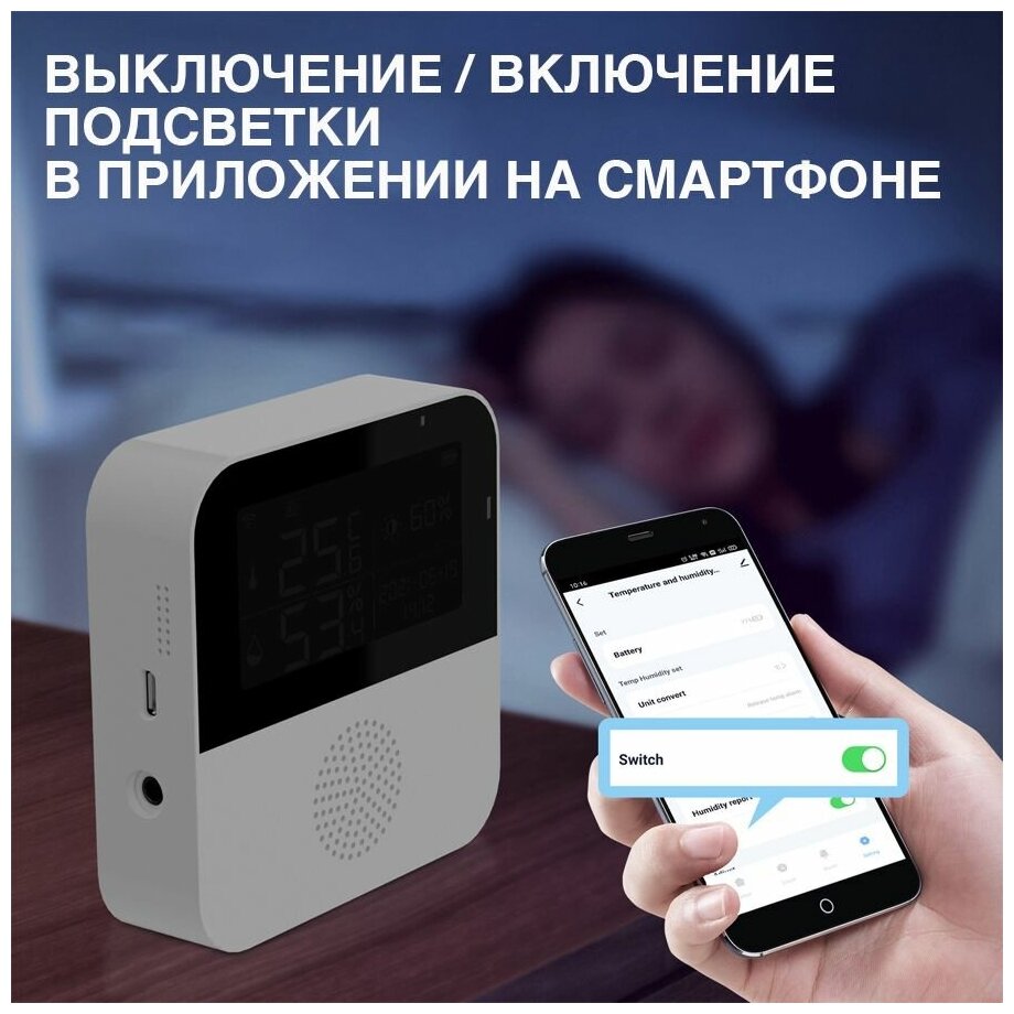 Датчик температуры, влажности и освещенности Tuya WIFI, дополнительный внешний датчик температуры, управление из приложения интересное: