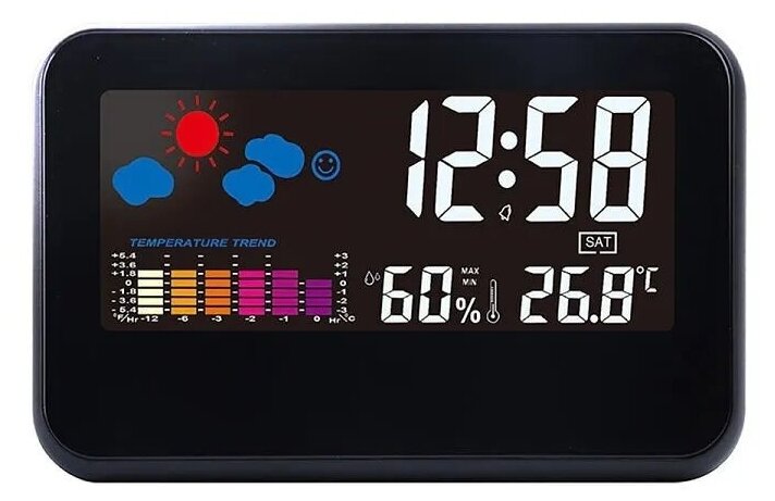 Цифровой термометр гигрометр часы- метеостанция HTC-2