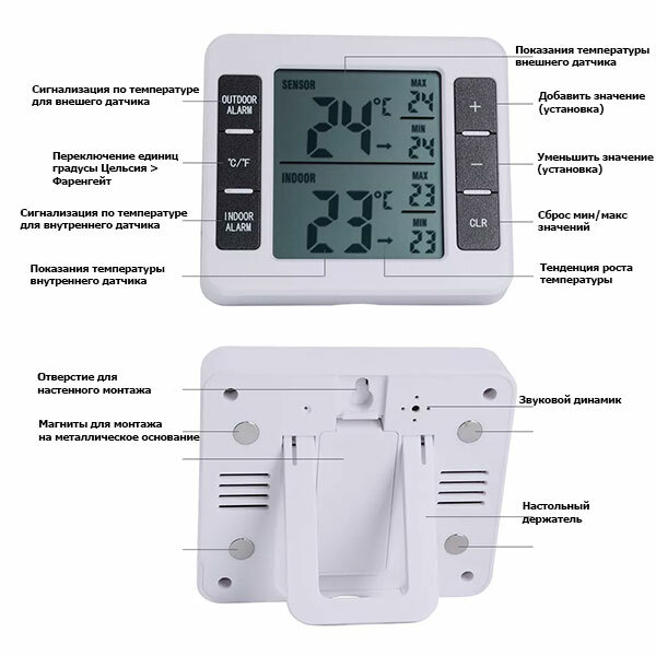 Amtast WT-2000 Термометр с беспроводным датчиком с функцией сигнализации WT2000 интересное: