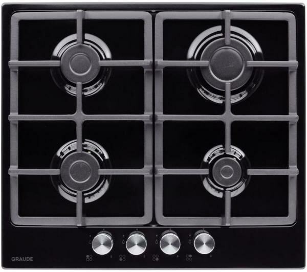 Встраиваемые газовые панели Graude/ Газ, 60 см, 4 конфорки, черный цвет