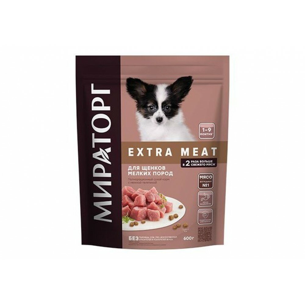 Корм сухой мираторг Extra Meat с нежной телятиной для щенков мелких пород от 1-9мес., 600 г