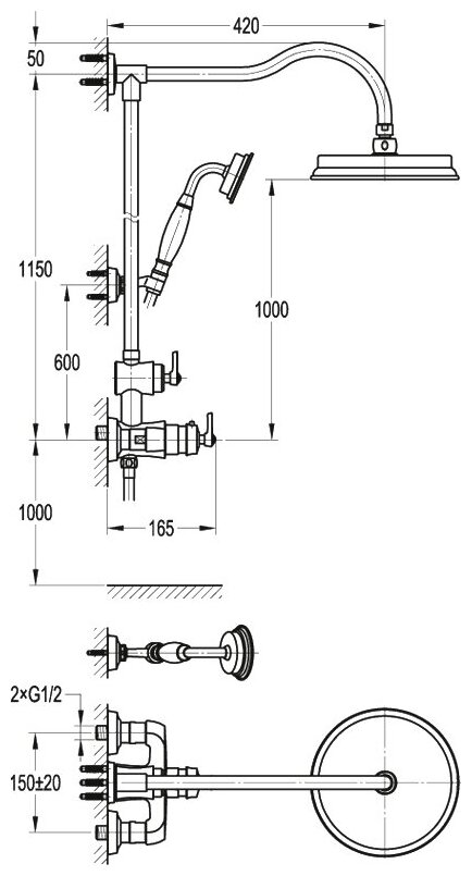 | Дополнительная информация | высота стойки для душа: 1200 мм |