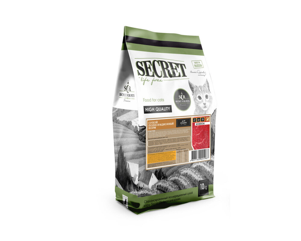 Корм сухой Secret For Pets Secret Life Forse для кошек ягненок, 10 кг