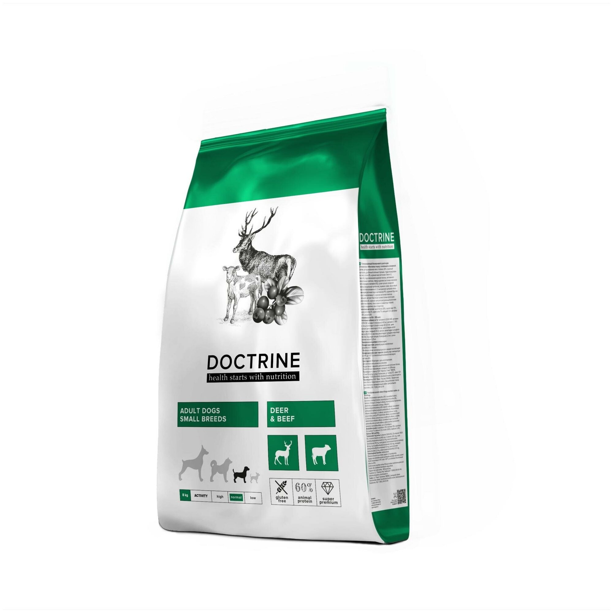 Сухой корм DOCTRINE ADULT DOGS SMALL BREEDS DEER&BEEF беззерновой для взрослых собак маленьких пород с телятиной и олениной (8 кг)