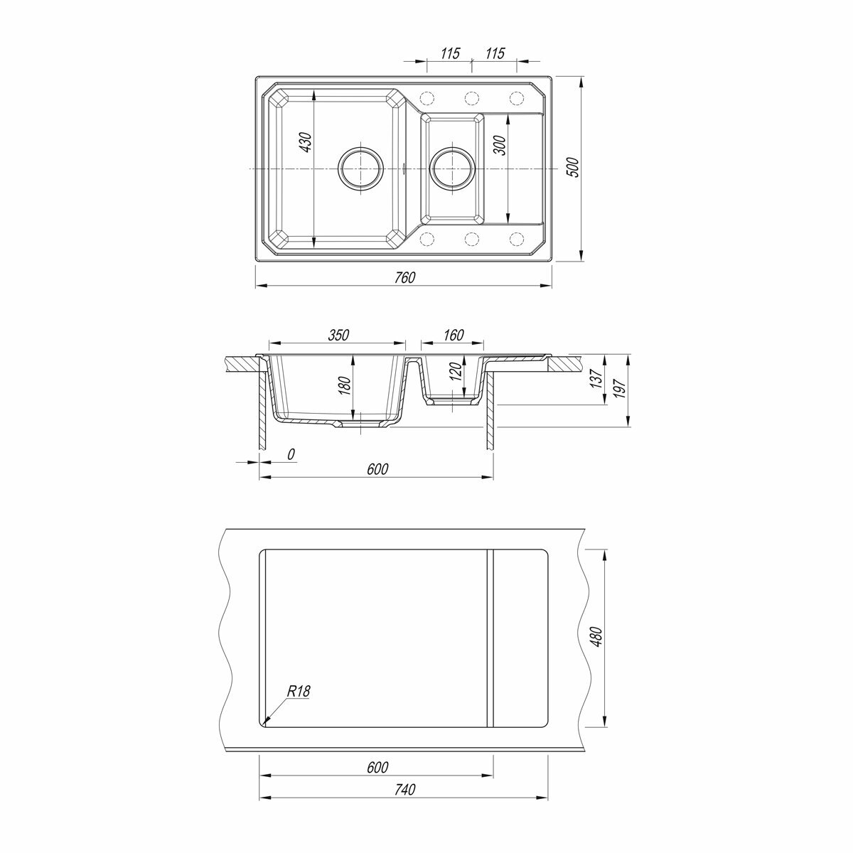 Врезная кухонная мойка Marrbaxx Модель 210 75.5х50см искусственный гранит